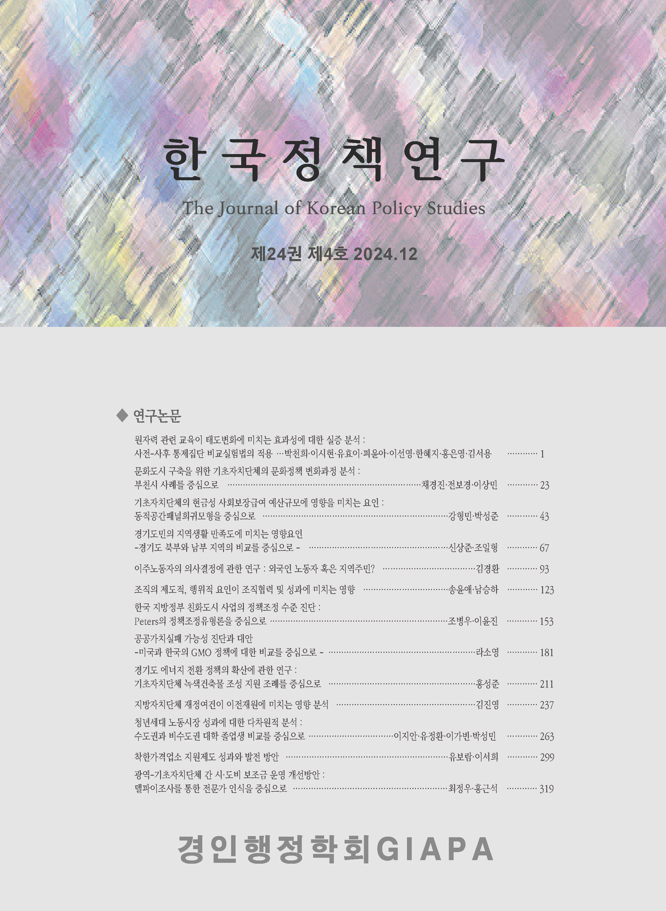 - 다음논문없음 (현재 논문이 "한국정책연구 제24권 4호"의 마지막 논문입니다.)