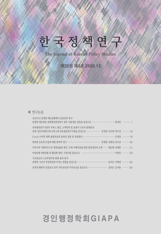 - 신열 / 2010 / 지방공기업 조직관리의 실태와 발전전략: 경기도 시군 지방공사 사례를 중심으로 / 한국정책연구 10(1):333~353 dbpia